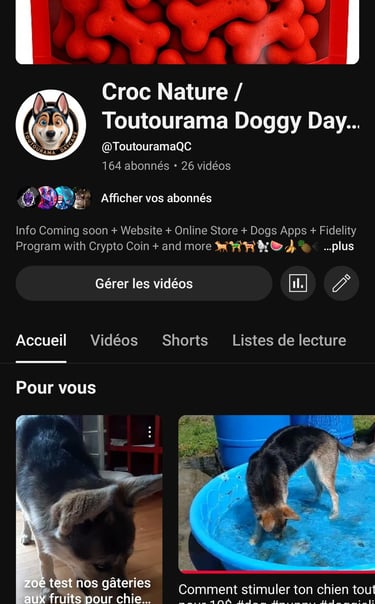 Abonnez-vous à notre chaîne YouTube ! Avec 1000 abonnés, nous pourrons lancer nos Live quotidiens et partager chaque journée remplie de bonheur avec les chiens de Toutourama et Bonkzilla